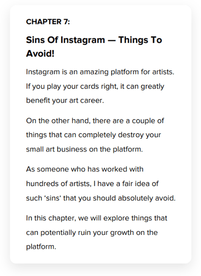 Covers everything from correctly setting up your profile, hashtags research, organic growth strategies, art presentation & much more!